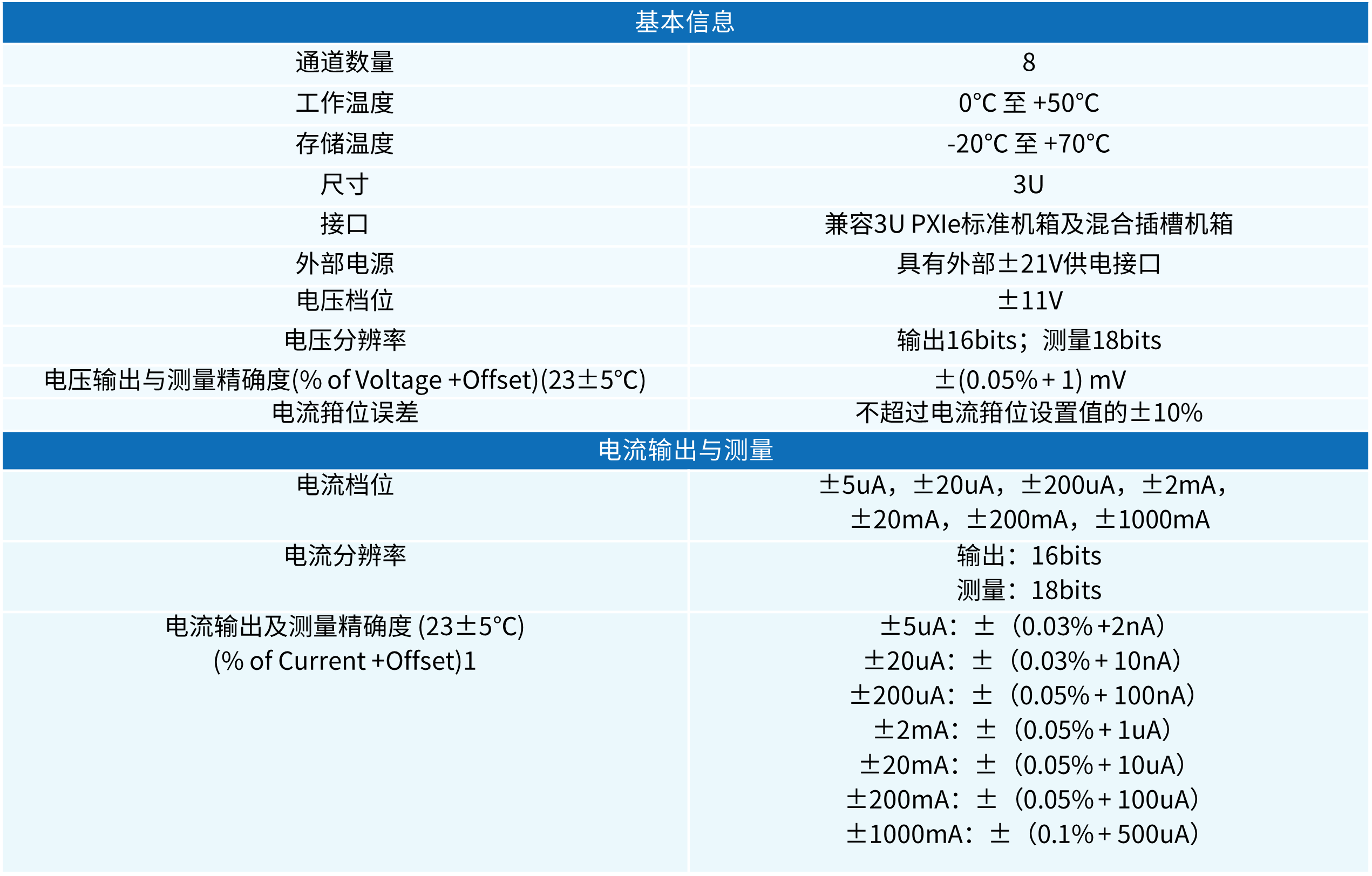- 8個(gè)高分辨率高精度大功率電壓源、電流源輸出及測(cè)量通道
